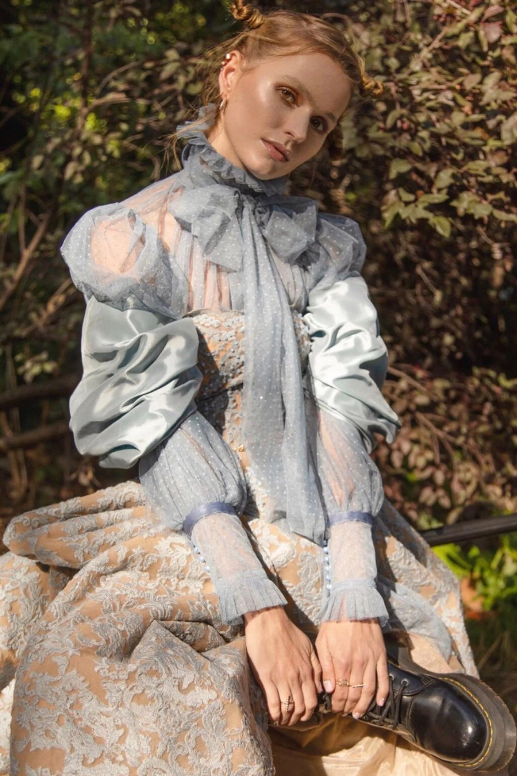 Posing in a FADWA BAALBAKI Spring Summer 2021 Couture Piece